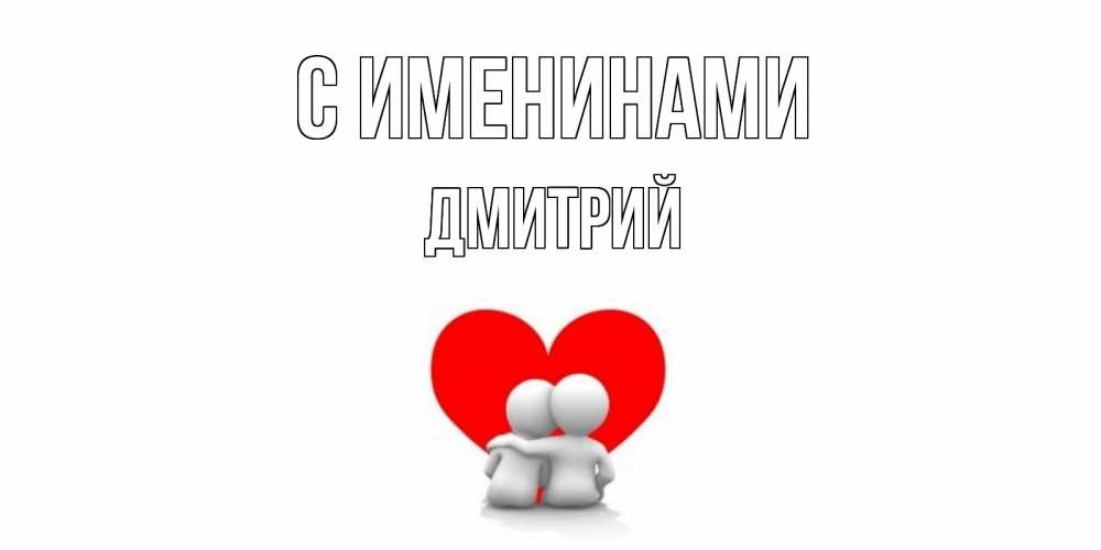 Открытка С именинами Дмитрий. обнимашки на фоне сердца. обнимаю