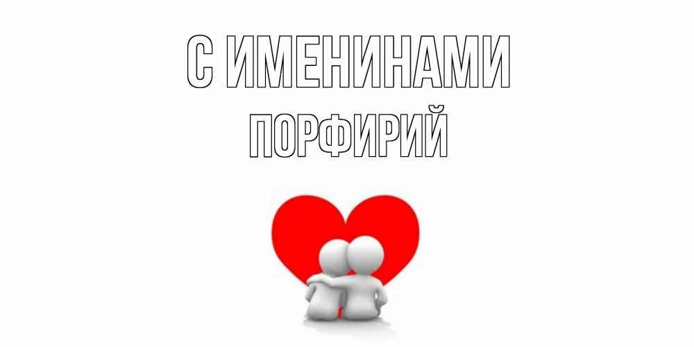 Открытка С именинами Порфирий. обнимашки на фоне сердца. обнимаю