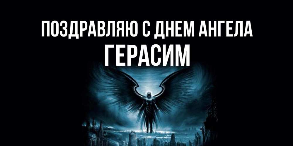 Открытка Поздравляю с днем Ангела Герасим. Открытка на день ангела, ангел на фоне неба и города. ангел, день ангела