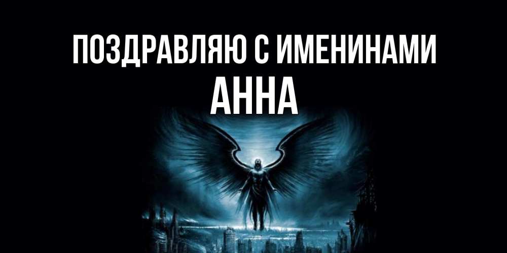 Открытка Поздравляю с именинами Анна. Открытка на день ангела, ангел на фоне неба и города. ангел, день ангела