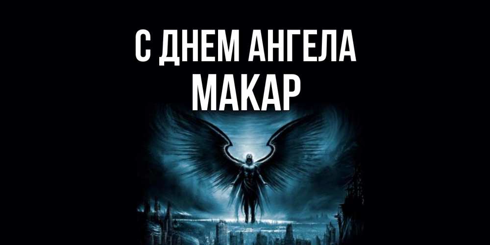 Открытка С днем Ангела Макар. Открытка на день ангела, ангел на фоне неба и города. ангел, день ангела