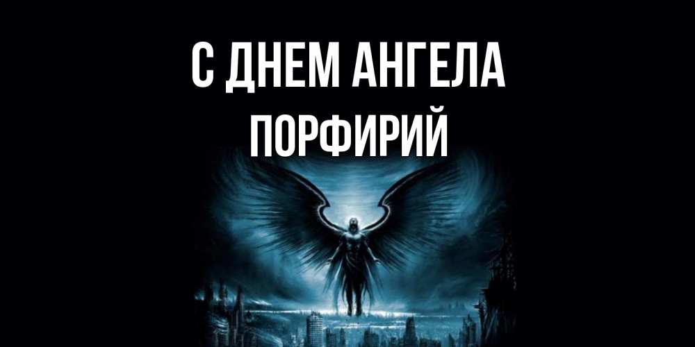 Открытка С днем Ангела Порфирий. Открытка на день ангела, ангел на фоне неба и города. ангел, день ангела