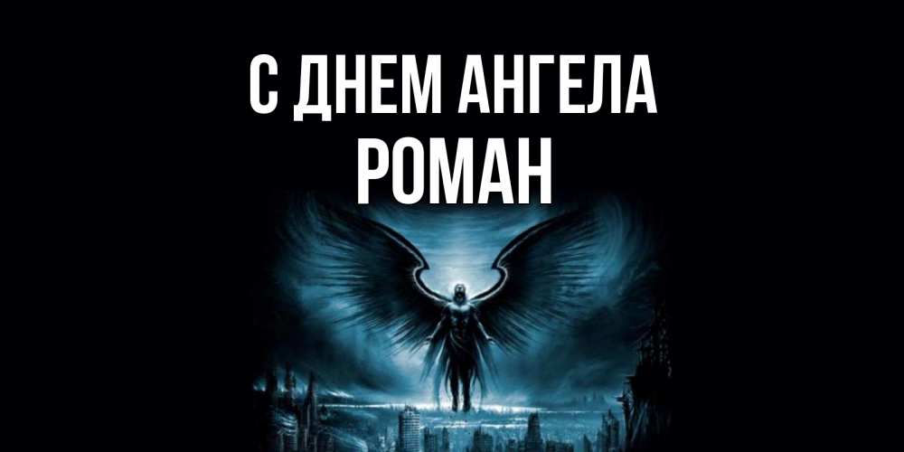 Открытка С днем Ангела Роман. Открытка на день ангела, ангел на фоне неба и города. ангел, день ангела
