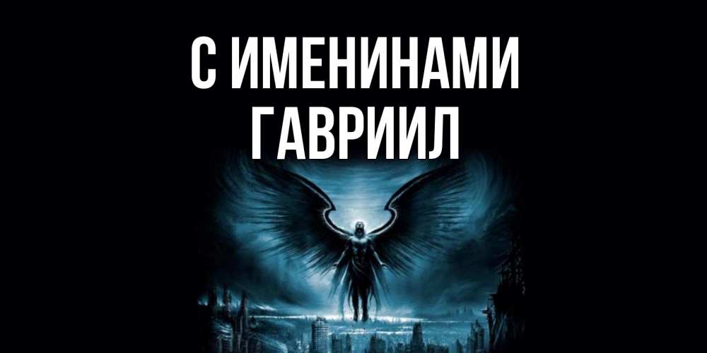Открытка С именинами Гавриил. Открытка на день ангела, ангел на фоне неба и города. ангел, день ангела