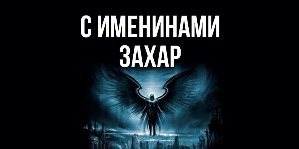 Открытка С именинами Захар. Открытка на день ангела, ангел на фоне неба и города. ангел, день ангела