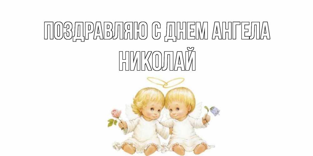 Открытка Поздравляю с днем Ангела Николай. Открытка на день ангела с детьми и цветами. Два ребенка ангела