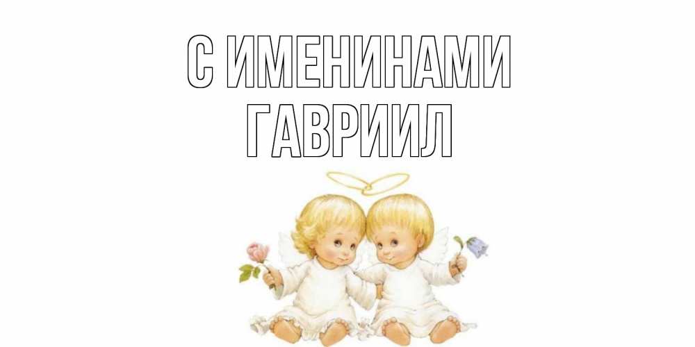 Открытка С именинами Гавриил. Открытка на день ангела с детьми и цветами. Два ребенка ангела
