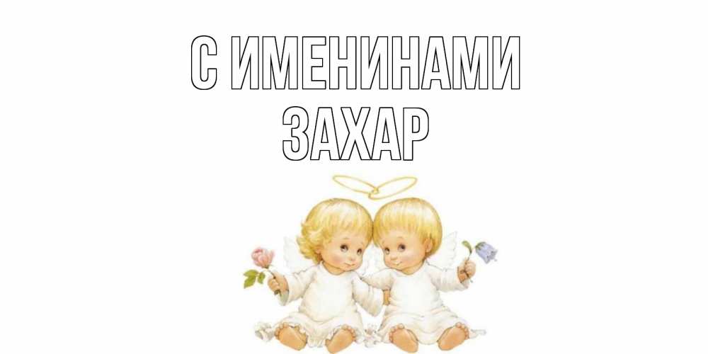 Открытка С именинами Захар. Открытка на день ангела с детьми и цветами. Два ребенка ангела