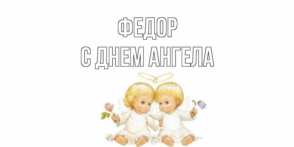 Открытка Федор С днем ангела. Открытка на день ангела с детьми и цветами. Два ребенка ангела