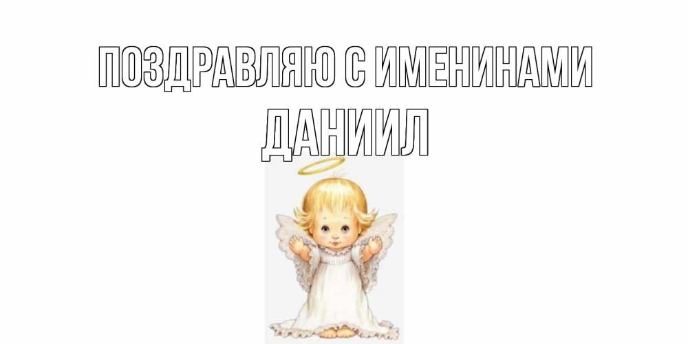 Открытка Поздравляю с именинами Даниил. Куколка ангел с нимбом. Открытка на день ангела. ангелочек, нимб