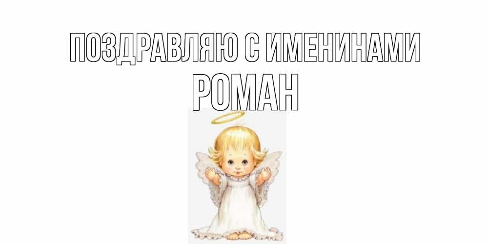 Открытка Поздравляю с именинами Роман. Куколка ангел с нимбом. Открытка на день ангела. ангелочек, нимб