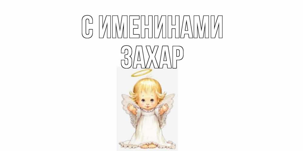 Открытка С именинами Захар. Куколка ангел с нимбом. Открытка на день ангела. ангелочек, нимб