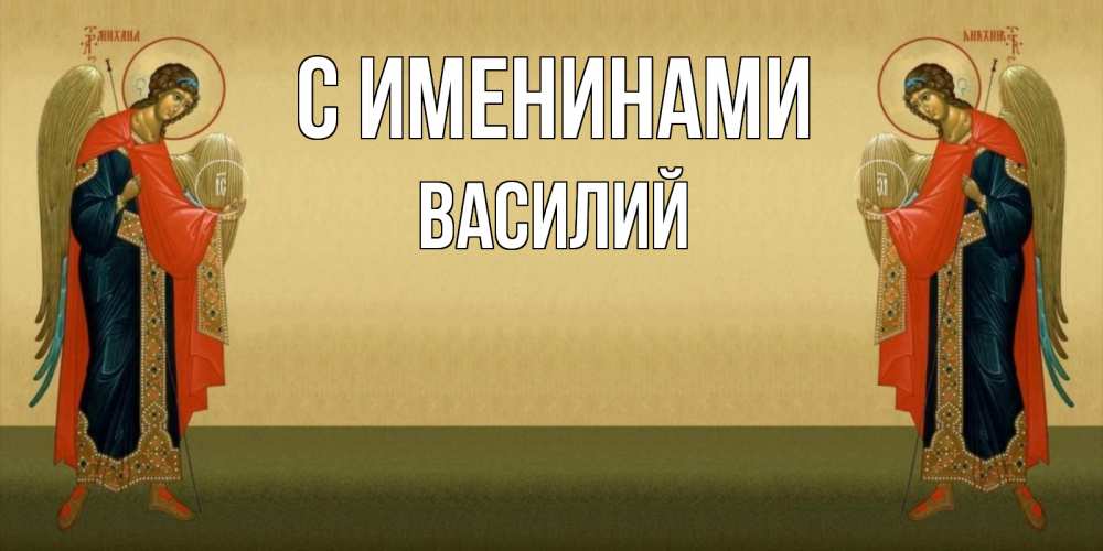 Открытка С именинами Василий. Открытка на день ангела с архангелом Михаилом для христиан. христианство, праздники, день ангела
