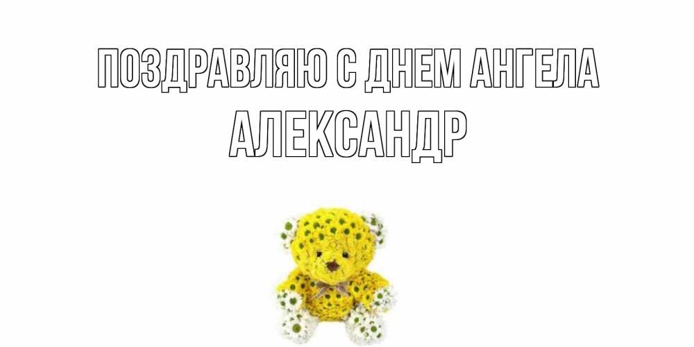 Открытка Поздравляю с днем Ангела Александр. мишка из цветов желает супер дня. позитивного настроения вам