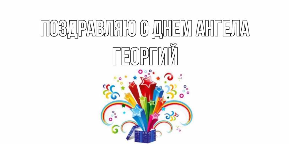 Открытка Поздравляю с днем Ангела Георгий. Открытка ко дню рождения с коробкой и радугой из звезд. Коробка,радуга,звезды
