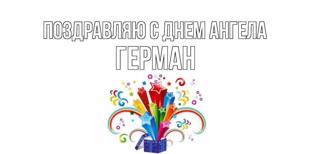 Открытка Поздравляю с днем Ангела Герман. Открытка ко дню рождения с коробкой и радугой из звезд. Коробка,радуга,звезды