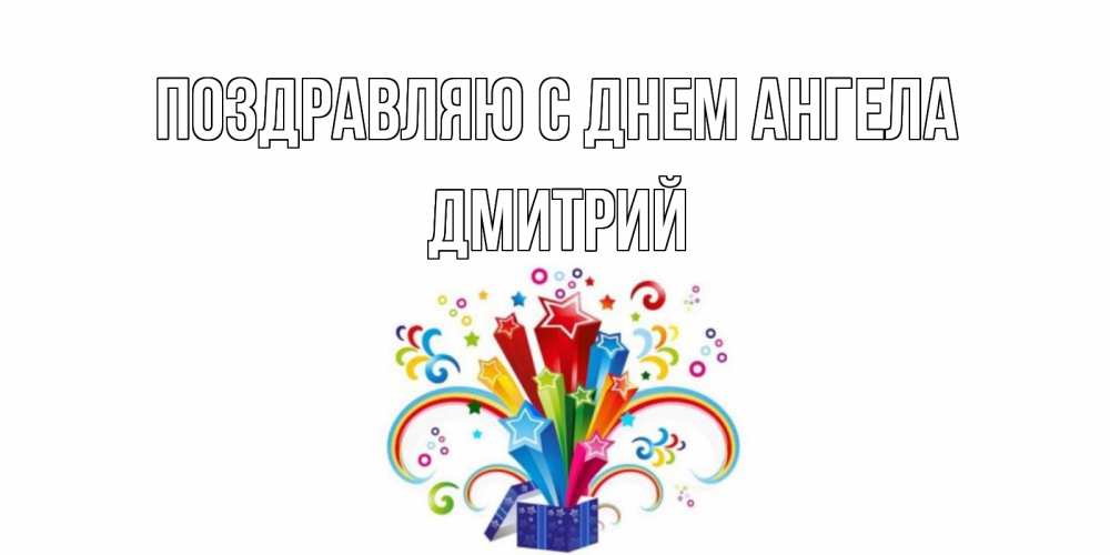 Открытка Поздравляю с днем Ангела Дмитрий. Открытка ко дню рождения с коробкой и радугой из звезд. Коробка,радуга,звезды