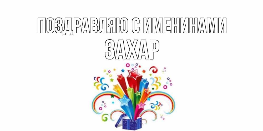 Открытка Поздравляю с именинами Захар. Открытка ко дню рождения с коробкой и радугой из звезд. Коробка,радуга,звезды
