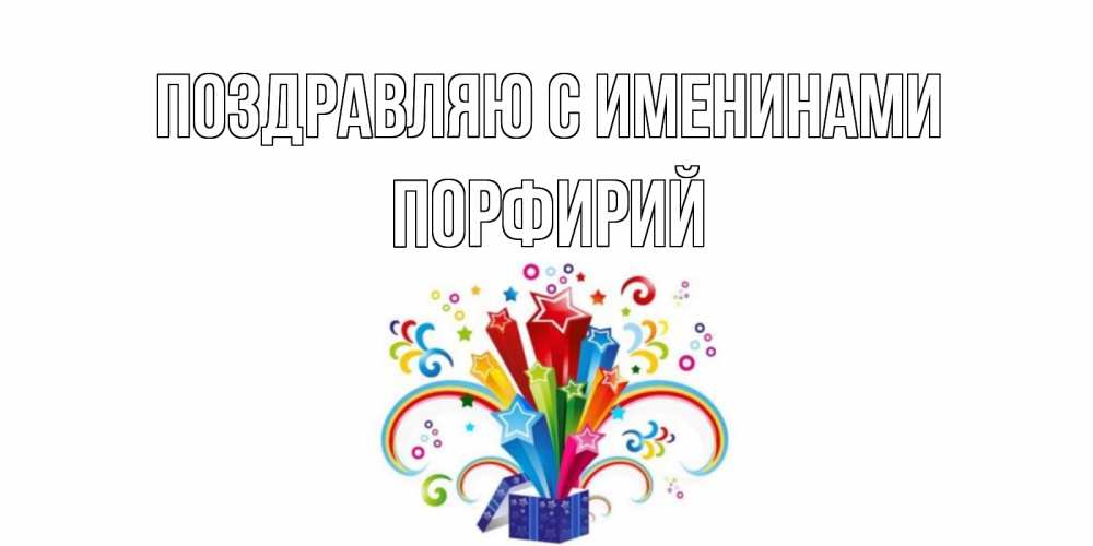 Открытка Поздравляю с именинами Порфирий. Открытка ко дню рождения с коробкой и радугой из звезд. Коробка,радуга,звезды
