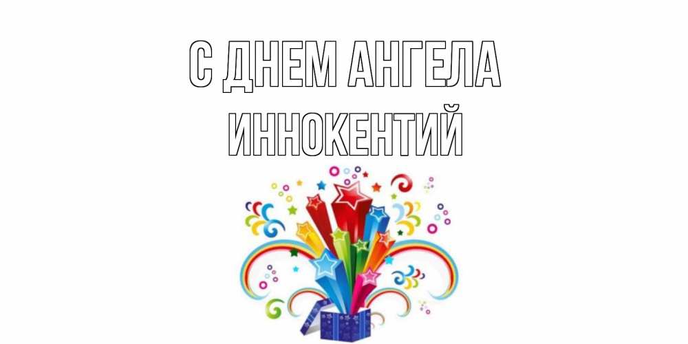 Открытка С днем Ангела Иннокентий. Открытка ко дню рождения с коробкой и радугой из звезд. Коробка,радуга,звезды