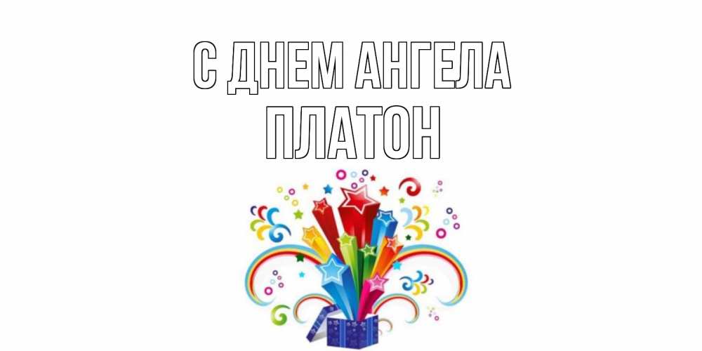 Открытка С днем Ангела Платон. Открытка ко дню рождения с коробкой и радугой из звезд. Коробка,радуга,звезды
