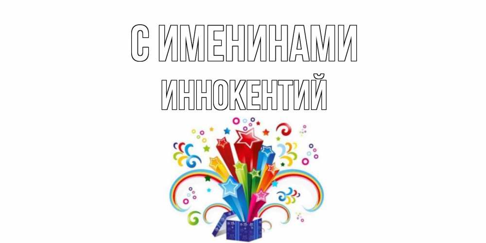 Открытка С именинами Иннокентий. Открытка ко дню рождения с коробкой и радугой из звезд. Коробка,радуга,звезды
