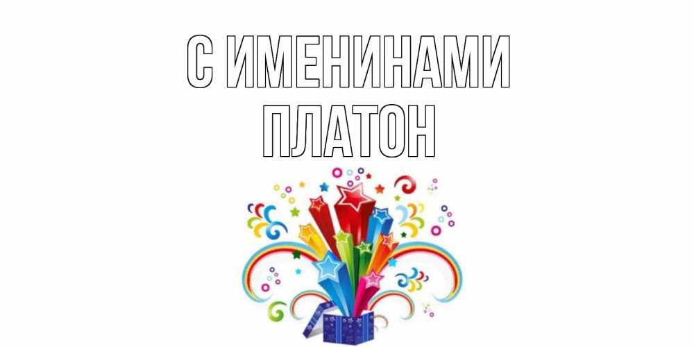 Открытка С именинами Платон. Открытка ко дню рождения с коробкой и радугой из звезд. Коробка,радуга,звезды