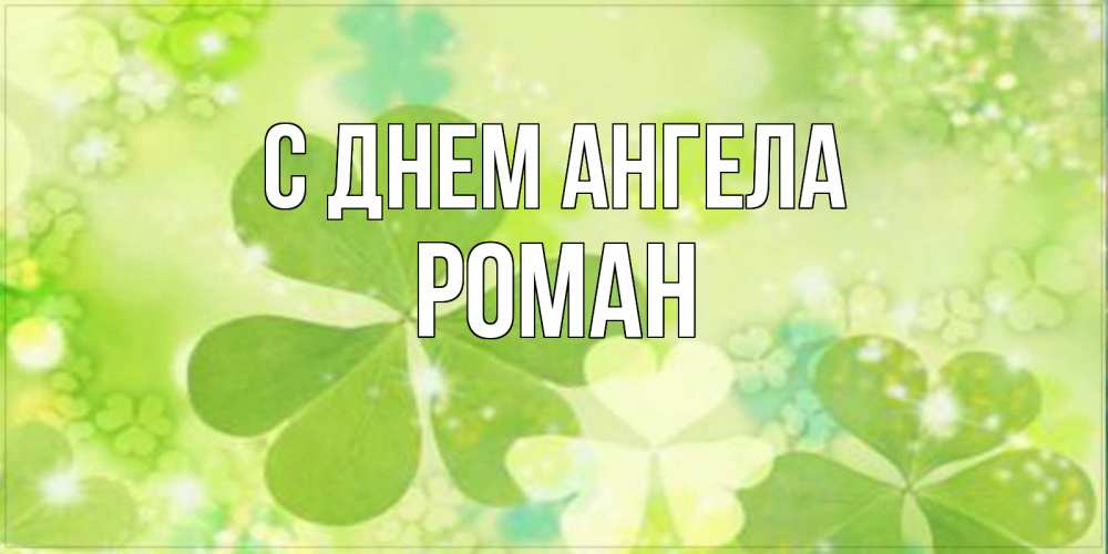Открытка С днем Ангела Роман. красивая позитивная открытка с пожеланиями лимонного цвета с клевером. открытка с листьями летними зелеными