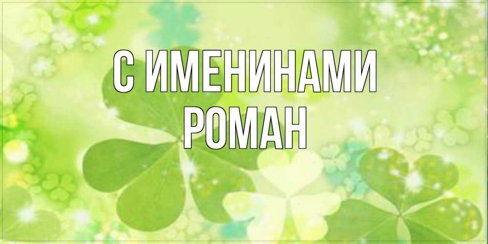 Открытка С именинами Роман. красивая позитивная открытка с пожеланиями лимонного цвета с клевером. открытка с листьями летними зелеными