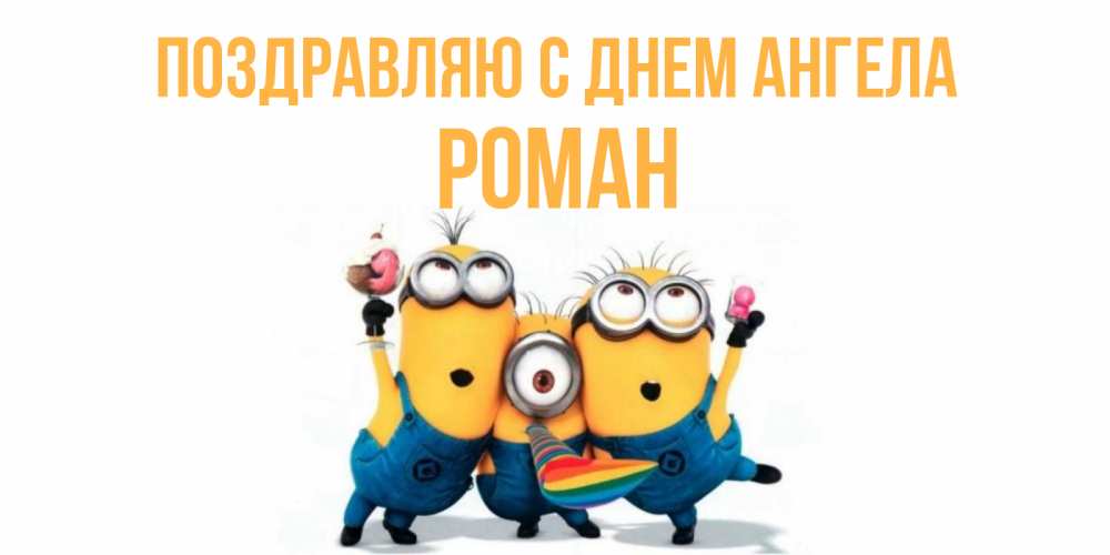 Открытка Поздравляю с днем Ангела Роман. Поздравления с миньонами на день рождения. миньоны
