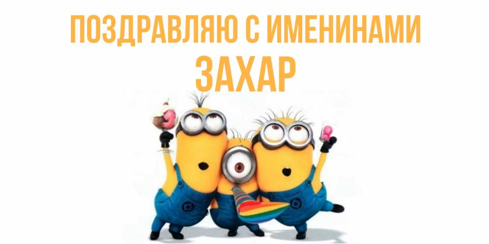 Открытка Поздравляю с именинами Захар. Поздравления с миньонами на день рождения. миньоны