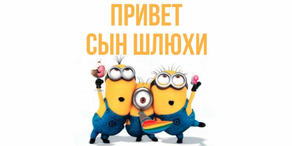 Открытка Привет Сын шлюхи. Поздравления с миньонами на день рождения. миньоны