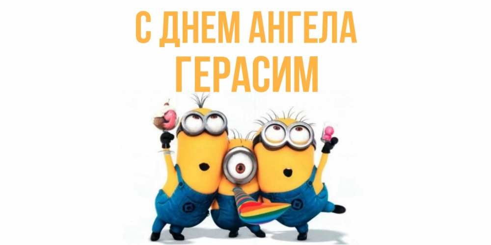 Открытка С днем Ангела Герасим. Поздравления с миньонами на день рождения. миньоны