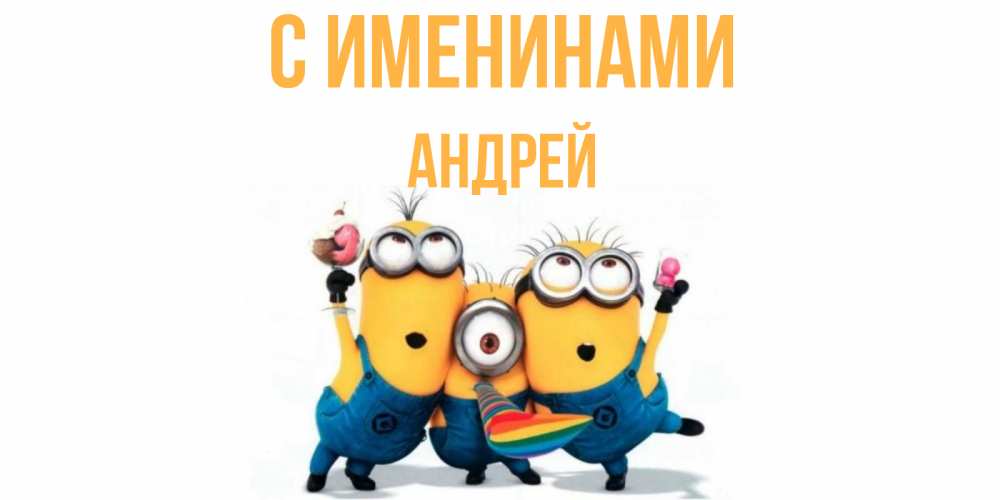 Открытка С именинами Андрей. Поздравления с миньонами на день рождения. миньоны