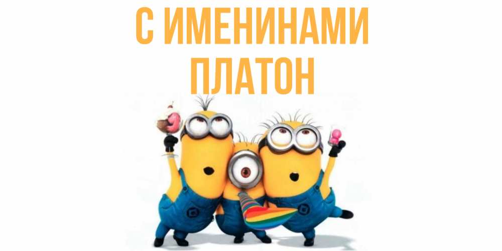Открытка С именинами Платон. Поздравления с миньонами на день рождения. миньоны