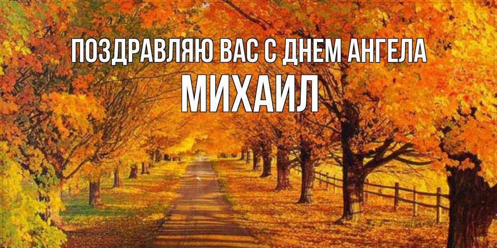 Открытка Поздравляю Вас с днем Ангела Михаил. прекрасного осеннего дня дорога осенью. деревья с осенними листьями