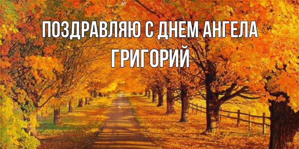Открытка Поздравляю с днем Ангела Григорий. прекрасного осеннего дня дорога осенью. деревья с осенними листьями