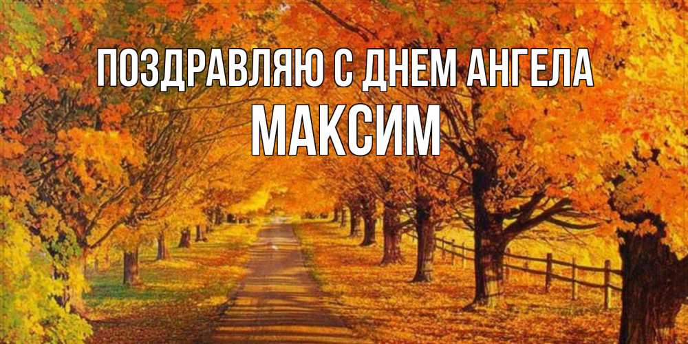 Открытка Поздравляю с днем Ангела Максим. прекрасного осеннего дня дорога осенью. деревья с осенними листьями