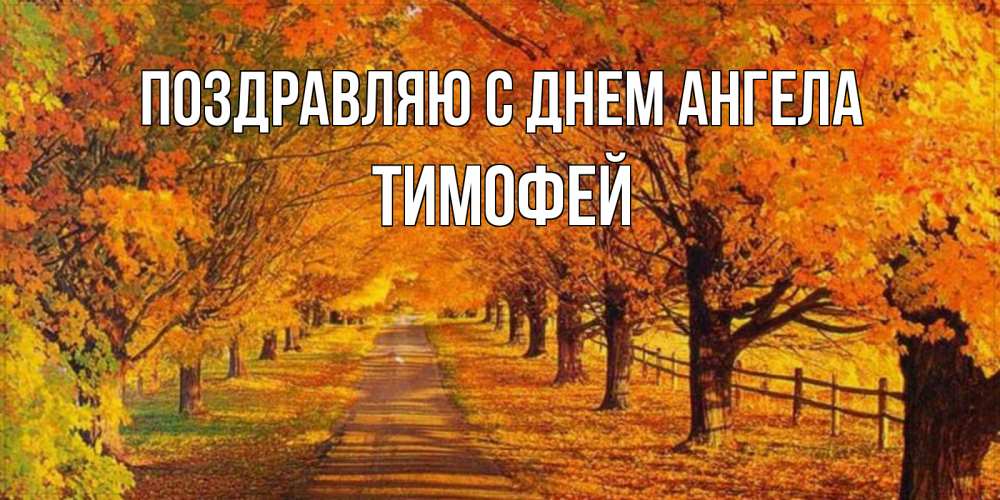 Открытка Поздравляю с днем Ангела Тимофей. прекрасного осеннего дня дорога осенью. деревья с осенними листьями