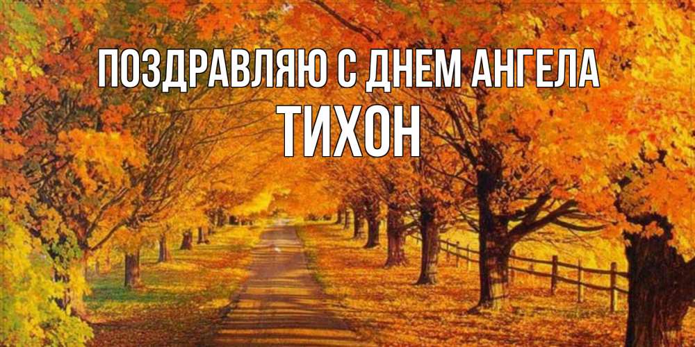 Открытка Поздравляю с днем Ангела Тихон. прекрасного осеннего дня дорога осенью. деревья с осенними листьями