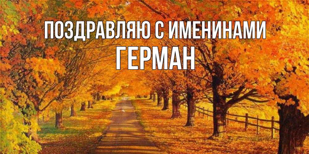 Открытка Поздравляю с именинами Герман. прекрасного осеннего дня дорога осенью. деревья с осенними листьями