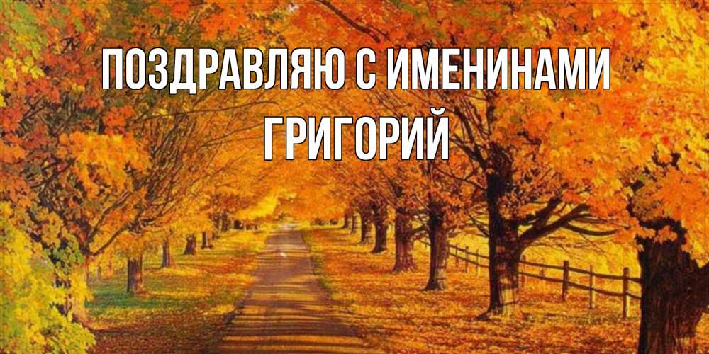 Открытка Поздравляю с именинами Григорий. прекрасного осеннего дня дорога осенью. деревья с осенними листьями