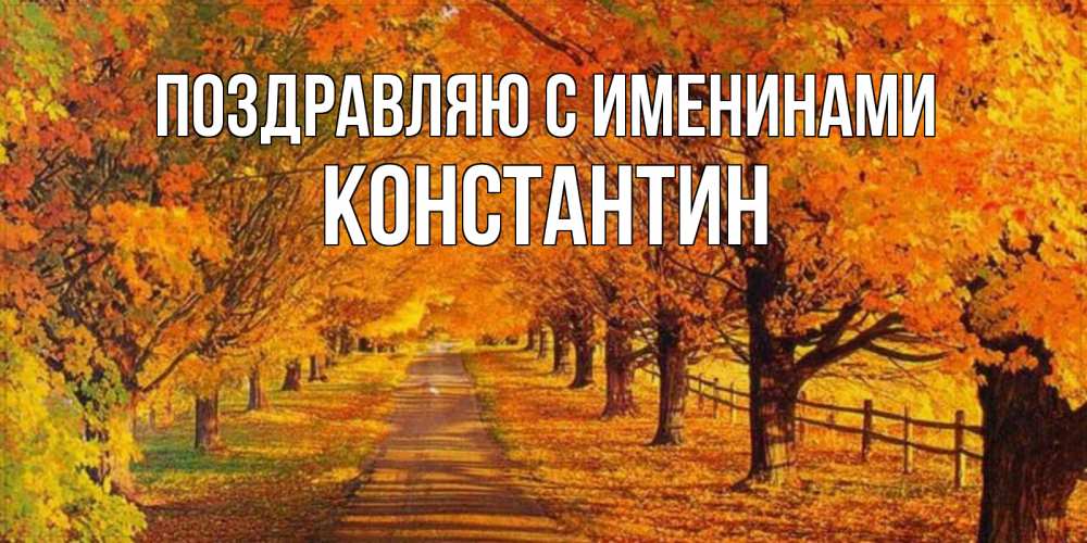 Открытка Поздравляю с именинами Константин. прекрасного осеннего дня дорога осенью. деревья с осенними листьями