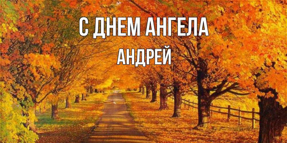 Открытка С днем Ангела Андрей. прекрасного осеннего дня дорога осенью. деревья с осенними листьями