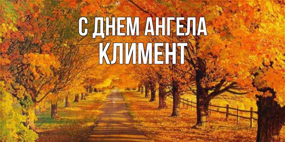 Открытка С днем Ангела Климент. прекрасного осеннего дня дорога осенью. деревья с осенними листьями