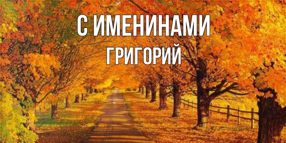 Открытка С именинами Григорий. прекрасного осеннего дня дорога осенью. деревья с осенними листьями