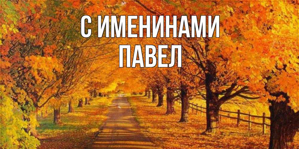 Открытка С именинами Павел. прекрасного осеннего дня дорога осенью. деревья с осенними листьями