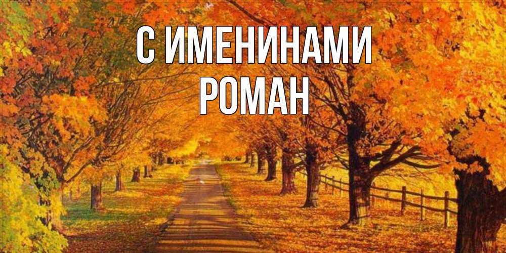 Открытка С именинами Роман. прекрасного осеннего дня дорога осенью. деревья с осенними листьями