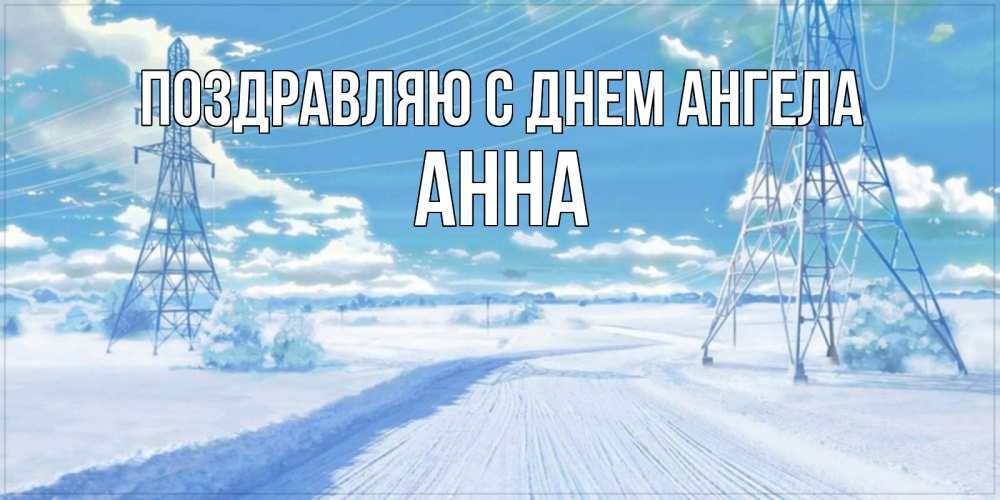 Открытка Поздравляю с днем Ангела Анна. хорошее зимнее утро с линией электропередач. зимняя открытка