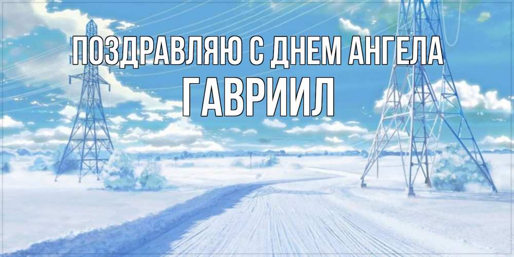 Открытка Поздравляю с днем Ангела Гавриил. хорошее зимнее утро с линией электропередач. зимняя открытка